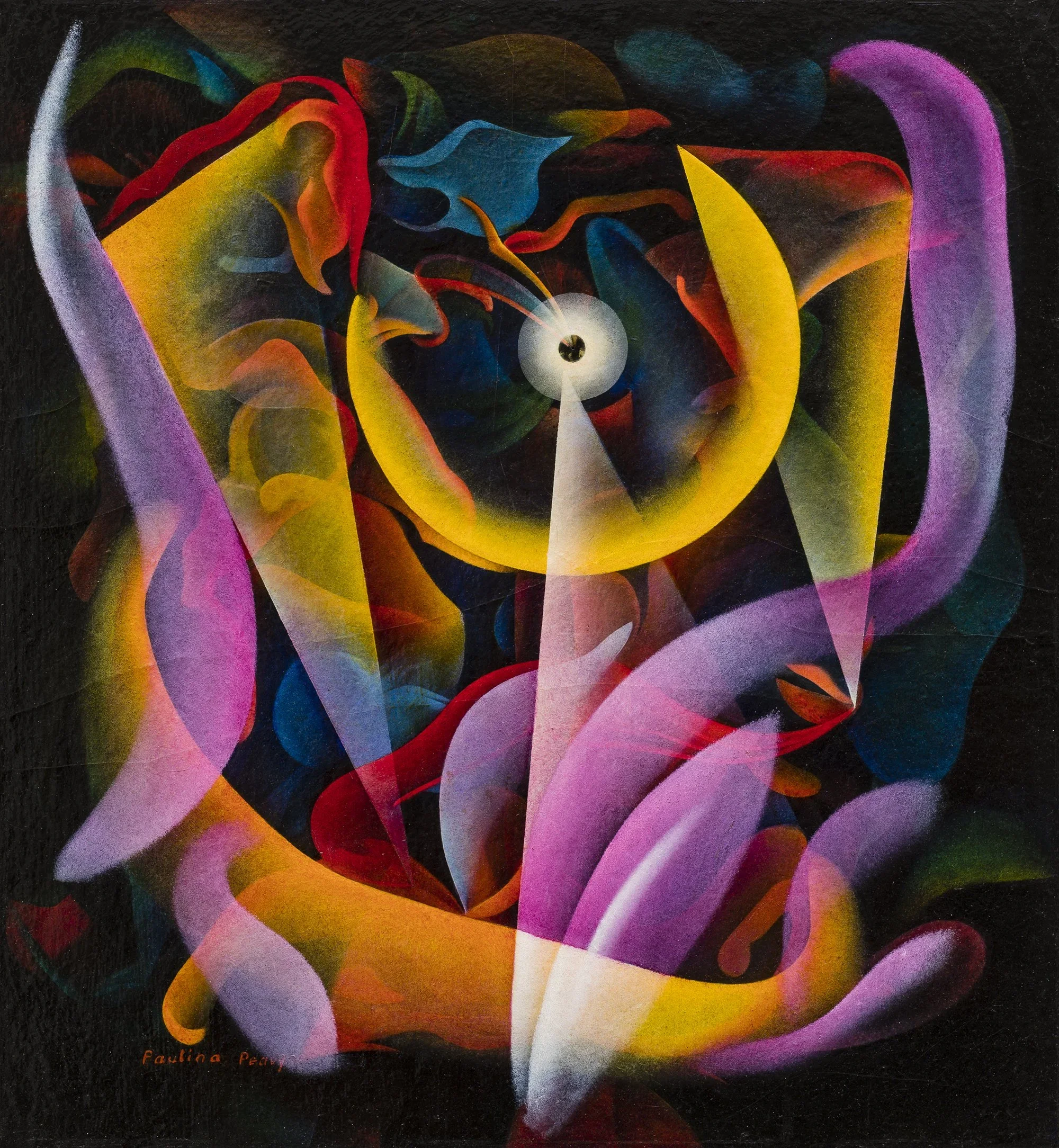 While Paulina Peavy’s (1901-1999) life spanned the twentieth century, her art and belief system represent a crucible for our current moment. She challenged gender norms and racial divides, revitalized hermetic and matriarchal systems, embraced cult traditions, and played a vital role in a community of groundbreaking artists. She saw herself as an emissary, a messenger for advanced beings contextualized through the phenomenon of UFOs. A radical innovator, Peavy would become the first established fine artist to be publicly associated with the movement known as astroculture.